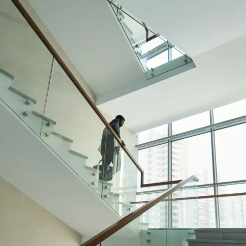 Nossos guarda-corpos de vidro são fabricados para oferecer proteção sem comprometer a visibilidade. Ideais para áreas que requerem segurança, mas que